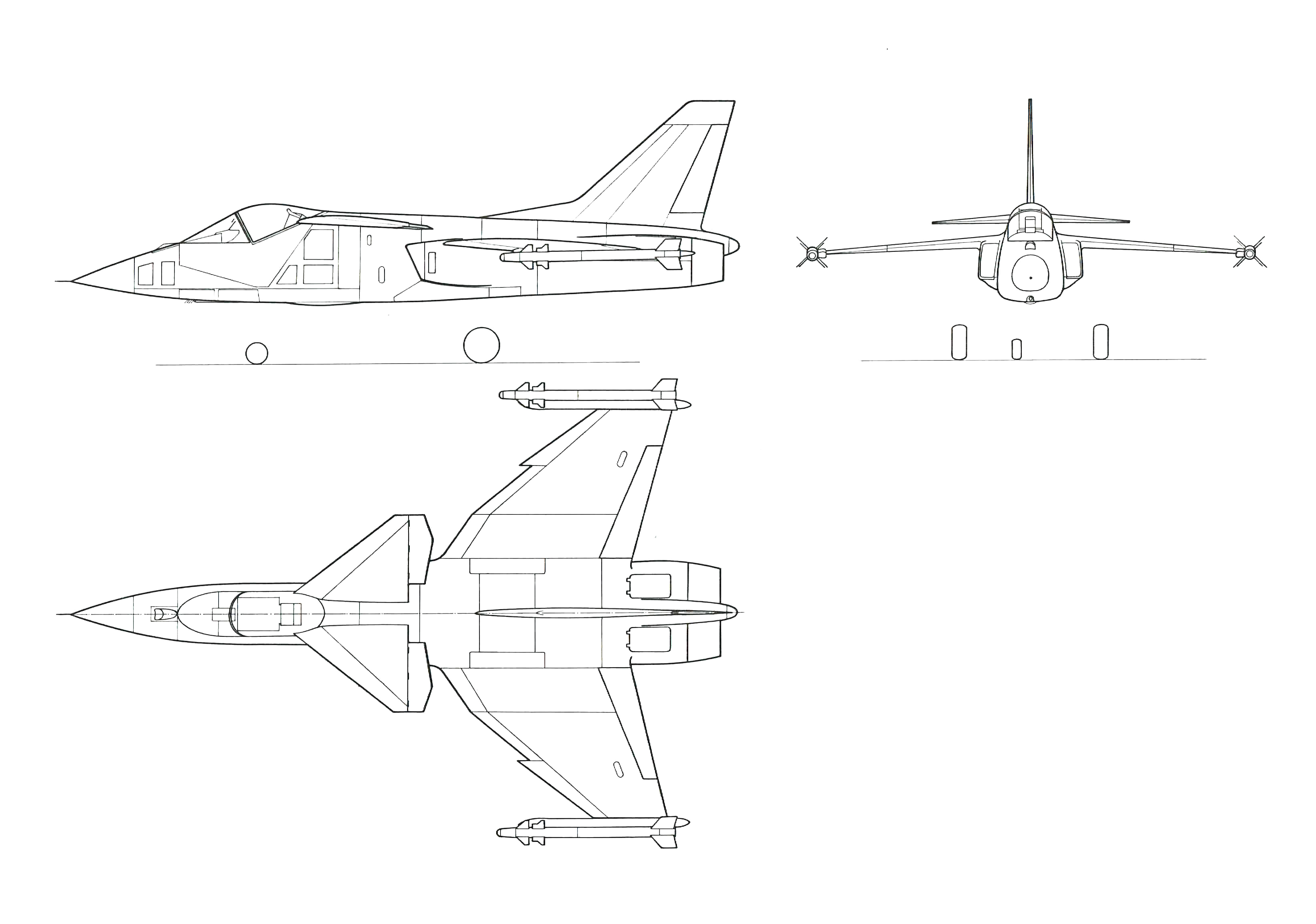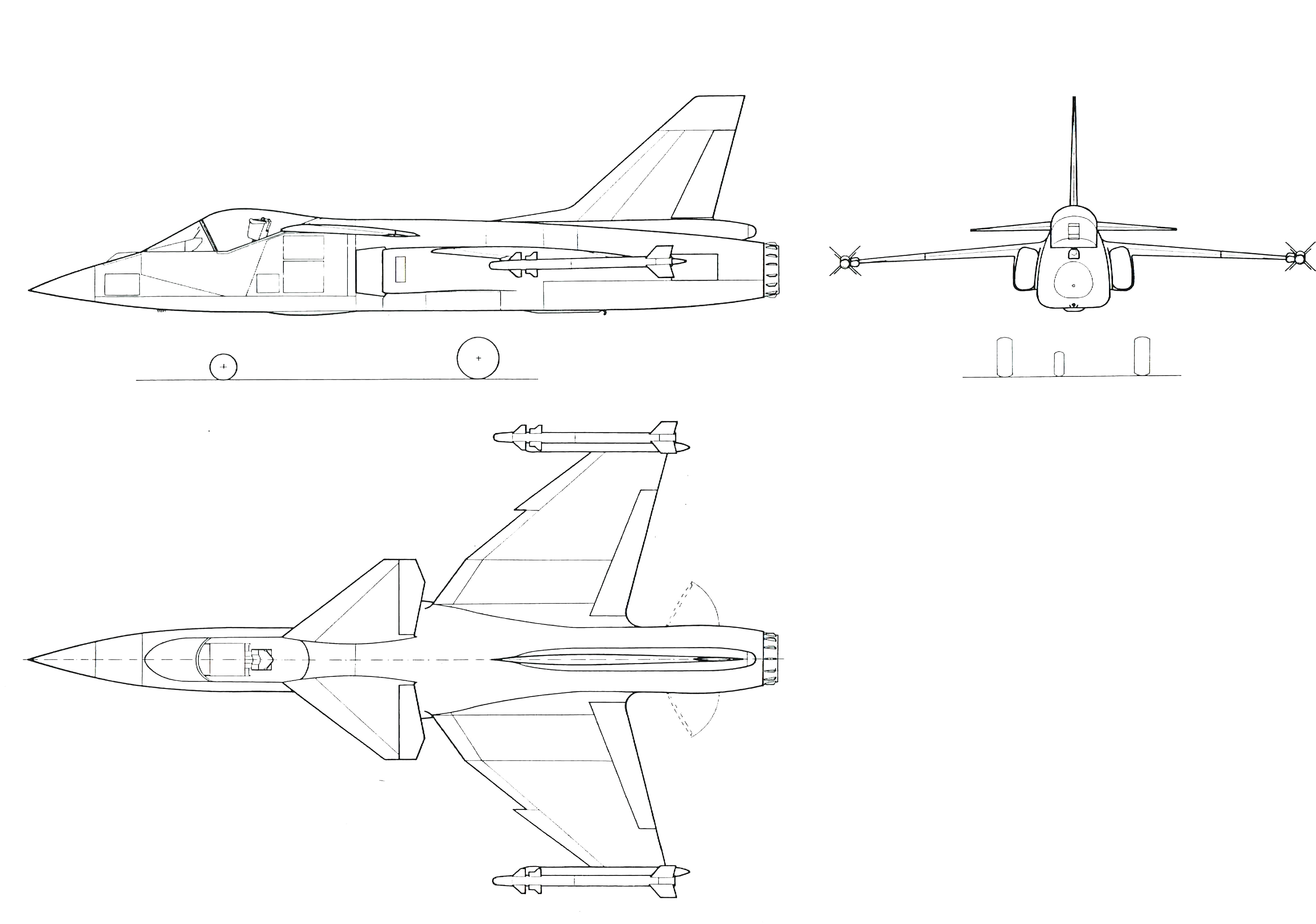 PIRANHA 6 was designed to meet the battlefield air superiority and battlefield interdiction roles. These role requirements led to a very small, agile supersonic fighter powered by advanced engines such as the Turbo-Union RB199, EuroJet EJ-200, or Snecma M88. The design works undertaken in the early eighties have been applied by ALR in other projects. An AviationWeek article on the concept, published in 1979 may be found here (login required).