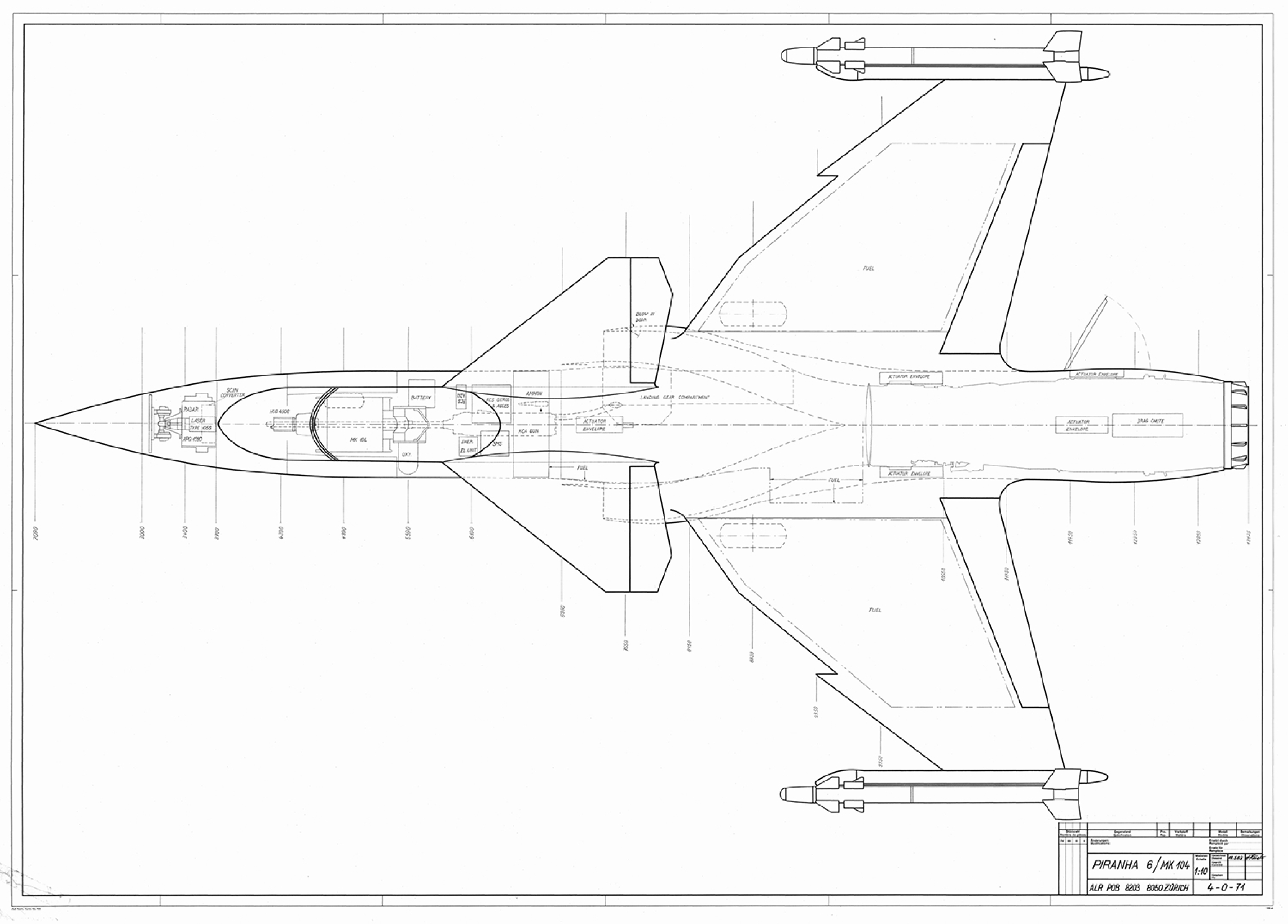 The Piranha project was undertaken by ALR as a private venture with support from Swiss and European industry. The reasons for initiating the project was that development, manufacturing, operational and support cost of advanced tactical fighter aircraft at that time (F-111, F-15, F-18) had risen so high that the number of aircraft which an armed service was able to procure had been reduced to unacceptably low levels. This in particular for smaller air forces where the number of a/c was not sufficient for efficient operations and the vulnerability on the ground was too high.